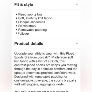 Piped Sports Bra - JoyLab" Floral Print Removable Padding, Elastic Strap 🆕