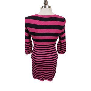 Piper & Blue Striped Sweater Dress Pink & Black - Medium - Knee Length Classic