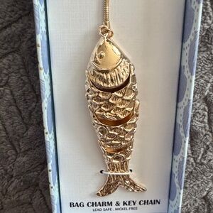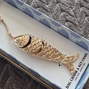 Elegant gold fish keychain by Piper. Perfect for adding charm to your bag.