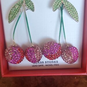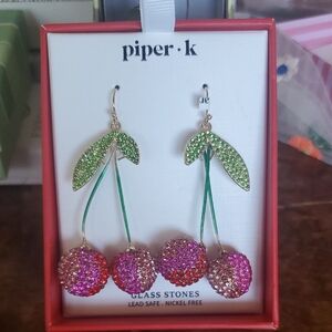 Add a playful touch to your look with Piper K's Cherry Drop Earrings. Featuring vibrant green leaves and sparkling pink cherries, these earrings are perfect for any occasion.