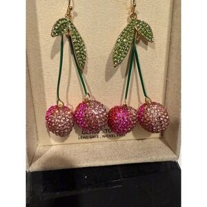 Keywords: Piper K, cherry earrings, pink earrings, rhinestone earrings, fruit earrings, dangle earrings, drop earrings, gold tone, statement earrings, novelty earrings, sparkly earrings, party earrings, gift for her, women's earrings