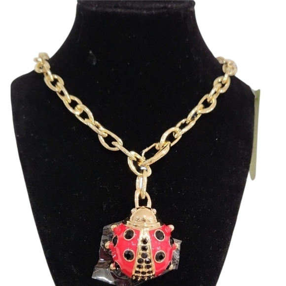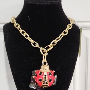 💛🔹️Piper K 🔹️Elegant Gold Necklace with Red Ladybug Pendant