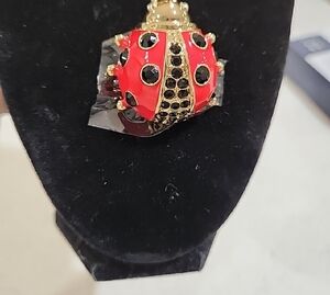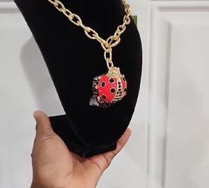 This stunning gold necklace features a charming red ladybug pendant, adding a whimsical touch to your ensemble. Perfect for any occasion.