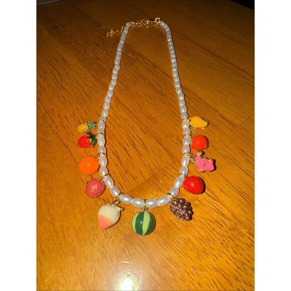 Piper K Fruit Necklace Charms Gold Tone Beaded Pearl Colorful Hand Painted NWOB