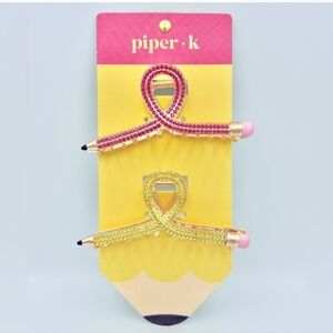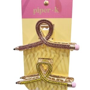 🔹️Piper K 🔹️Glitter Pink and Yellow Rhinestone Hair Clips 2 Pk.nwt ✨️✏️