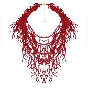 🔹️ Piper K 🔹️Hand Beaded Made In India Fringe Red Coral Cascade Necklace 🪸