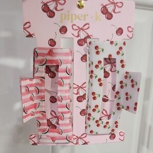 🔹️ Piper K 🔹️Pink and White Cherry Watermelon Hair Bow Claw Clip 2 Pc NWT ✨️🍉