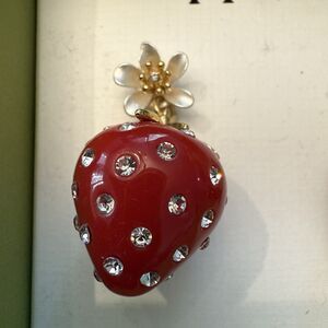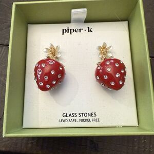 Piper K Strawberry Dangle Earrings Gold tone Glass Stones Fruit Gift Box New