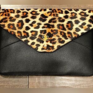 In Excellent Condition, this Vegan Leather Crossbody has a Cheetah Print Front Flap Button Closure, Gold Tone Hardware, Long Adjustable Carrying Strap, a Large Interior Storage Area, 2 Interior Slip Pockets, 1 Interior Zipped Pocket, 8 Interior Credit Card Holders, an Interior Key Change Holder and a Large Exterior Clear Zipped Back Pocket. The Signature Gold Piper Noble Crown Logo is Located on the Front Flap, Back Zipped Pocket, and Interior of the Bag. This Bag is Classy and Versatile, and the Perfect Size (15" x 10").