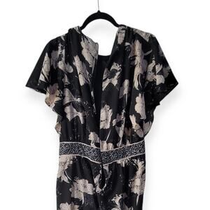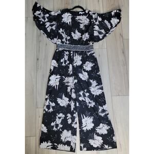 Piper and Scoot Floral Wide Leg Crew Neck Jumpsuit Flare Sleeves Women Sz L