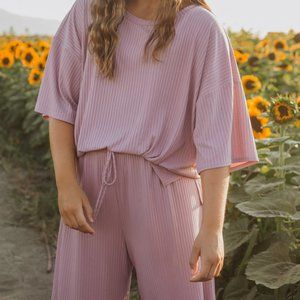 Brand new set of pants and a shirt from Piper & Scoot. Only tried on once. Sold out color/size on P&S site. Stretchy, ribbed fabric.