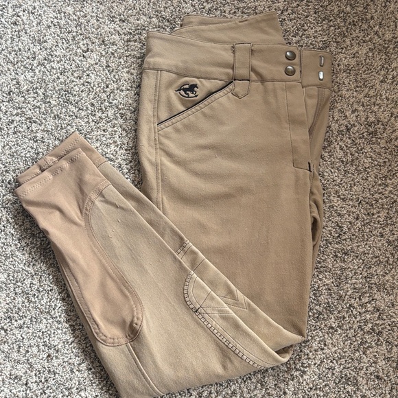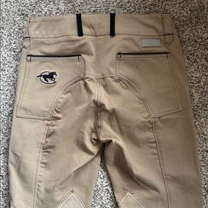 Piper by Smartpack - Tan with black piping and details. Ridden in less than 10 times. Classic knee patch and euro seat. SIZE 30 Regular. Small round stain on back pocket noted in pictures