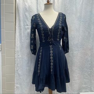 Open back, 3/4 sleeves, fully lined w flounce at the bottom. Elasticized cuffs, zip closure at low back, single button nape closure.
