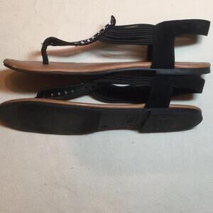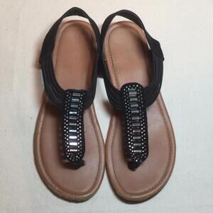 Piper thong sandals. Black with crystals along the top of foot. Flats, size 5. Shows wear along toes. See pictures run big, they're 9.75" long.