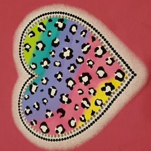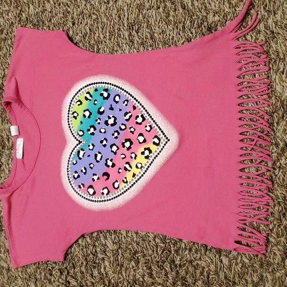 Pink shirt with fringed bottom hem and a heart logo. Excellent condition