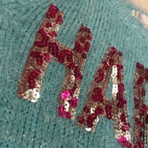 Piper Blue Shaggy Sweater w Sequin "HAPPY" Size XS 4/5
