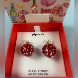 Piper K Red & Gold Strawberry Earrings with Glass Stones