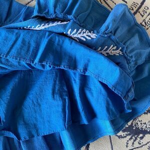 Adjustable strap cropped top with ruffled bottom and beautiful embroidery.