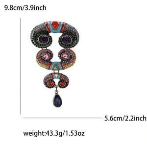 Vibrant and eye-catching, this statement brooch features a stunning array of colors. Perfect for adding a pop of color to any outfit.