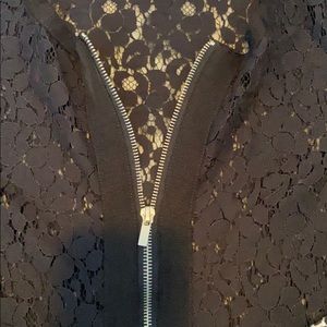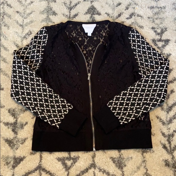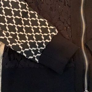 WORN ONCE, Black lace jacket with pattern sleeves, full zip