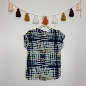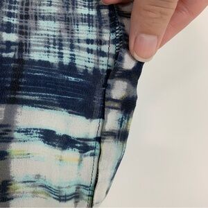 Piperlime Silk Blue Yellow Watercolor Pattern Blouse Size XS