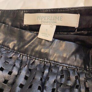 Piperlime Vegan Black Leather Laser Cut Midi Skirt