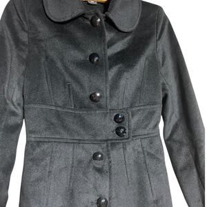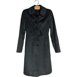 This elegant Pippa coat is an impeccable piece for any wardrobe. Crafted from a blend of 80% polyester and 20% viscose, it has a refined, smooth finish that promises both comfort and durability. The coat features luxurious jeweled buttons at the front, which add a sophisticated touch to the sleek black exterior. Fully lined with 100% acetate for a smooth fit, this coat comes in size 0 (modern XS) and is ideal for any formal or semi-formal occasion. The fabric composition ensures warmth and style, while the dry clean only care instructions preserve its quality. Made in Romania, this coat remains in excellent condition, showcasing both timeless design and elegance.