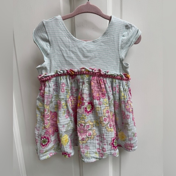 Pippa & Julie 3T Girls Blue Striped Multicolor Floral Short Sleeve Top Blouse