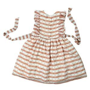 Pippa & Julie Girls Striped Sleeveless Ruffle Dress White & Tan Size 5