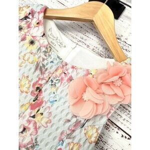 The Pippa & Julie floral wedding Party Midi flare sleeveless dress in size 8 is a beautiful and stylish option for young girls. The dress features a round neckline, zip closure, and a fit & flare style, making it perfect for various occasions such as parties, weddings, or casual/formal events. Made from 100% polyester blended fabric, this knee-length dress in a vibrant multi-color floral pattern is suitable for all seasons, whether it's winter, summer, fall, or spring. Perfect for adding a touch of elegance and charm to a special occasion in a girl's life.