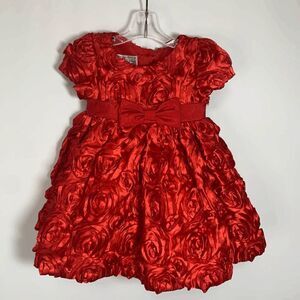 Pippa and Julie Red Rosette Satin Holiday Dress