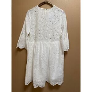 Pippidip Dress Eyelet Lace Mini Dress Scalloped Hemline and Sleeves size Medium