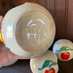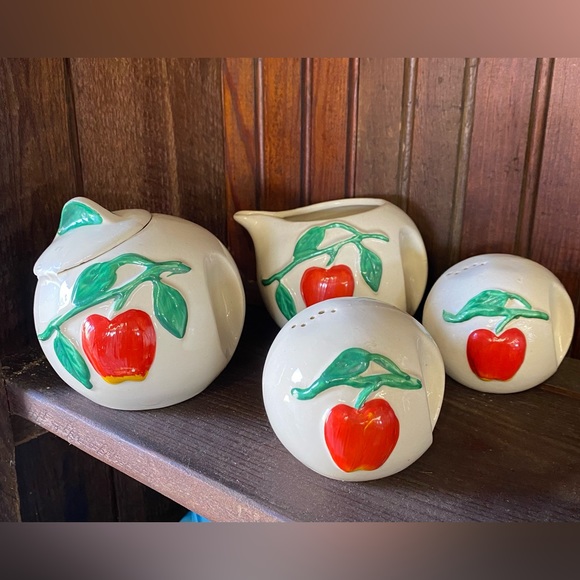 Pippin USA Pottery Apple Sugar bowl l, creamer and salt/pepper shakers.