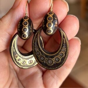 Pique Antique Victorian Dangle 14 Kt Gold and Silver Inlay Earrings