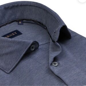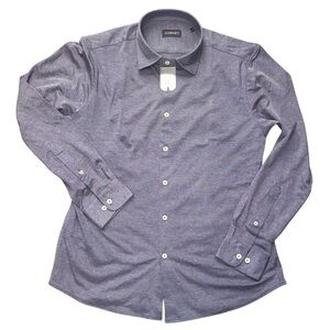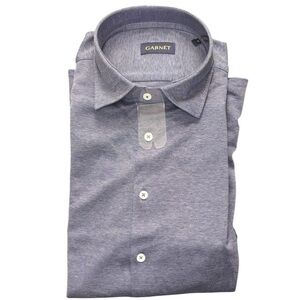 Solid B-Tech Italian collar jersey long sleeve shirt in navy long-sleeved shirt in solid color with Italian collar, French placket, adjustable notched cuffs and curved hem. B-Tech is a wrinkle free, 8-way stretch, breathability, easy-care, quick dry and thermal comfort features.