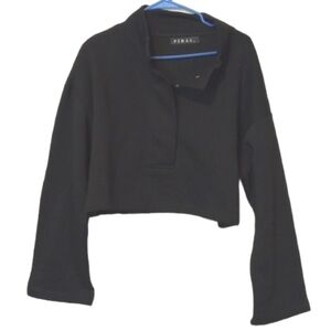 Piral Womens Sweatshirt Sz L Black Button Closure Cropped Athleisure Comfy Soft
