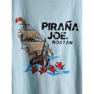 Pirana Joe Roatan Tank Top Light Blue Pirate Ship Graphic Men's XXL