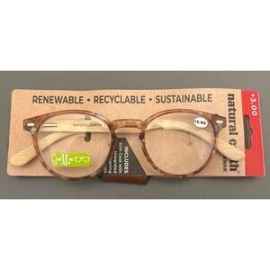 Natural Earth sustainable readers have BPA-free frames and temples. The hand-crafted bamboo temples are sourced from farms to prevent deforestation of bamboo groves. These feminine reading glasses are a classic, attractive design with clear lenses and come in a variety of diopters.