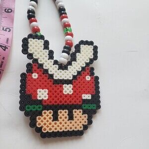 Piranha Plant Mushroom Perler Necklace. Perler + pony bead.