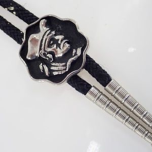 Pirate Bolo Neck Tie Western Cowboy Black & Silver Tone excellent condition