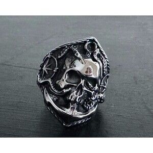 Pirate Skull Anchor Octopus Mens Ring Size 8 Stainless Steel Gothic Biker Rocker