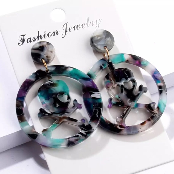 Pirate Skull and Crossbones Acrylic Resin Earrings
