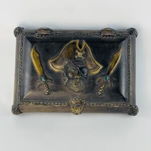 Pirate Wood Chest Box with One Eyed Jack Decor 10 x 7 x 3 1/2”