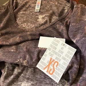 Pirates of the Caribbean LuLaRoe Classic T. The grey has a slightly purple tint to it. Design has ships, maps, compasses and skulls.
