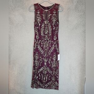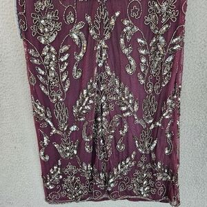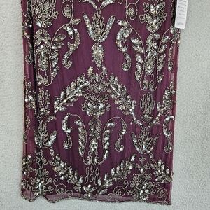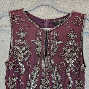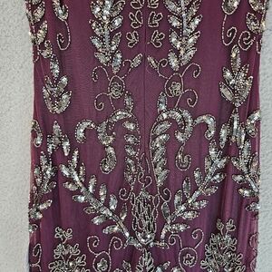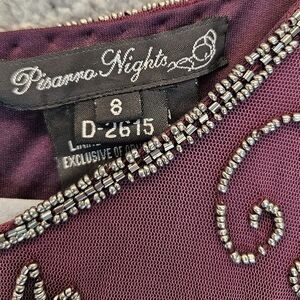 Pisarro Night Womens T Length Silver Beaded Gown Sz 8 Wine Color Chiffon Lined