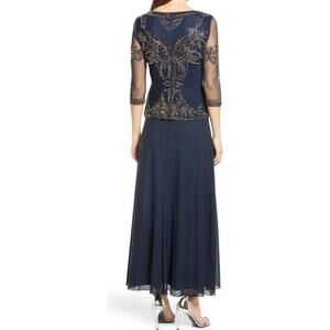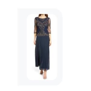 Pisarro Nights Bead Embellished Gown Maxi Dress Jewel Neck Blue Size 12 NWOT
