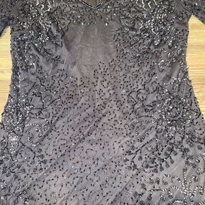 Pisarro Nights Beaded Mesh Column Gown Mid Sleeve Slate Size 8.NWOT. 15