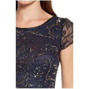 Pisarro Nights Beaded Mesh Midi Dress Navy 16 NWT