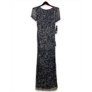 Pisarro Nights Beaded Short Sleeve Maxi Dress Evening Gown Gray Size 2 NWT