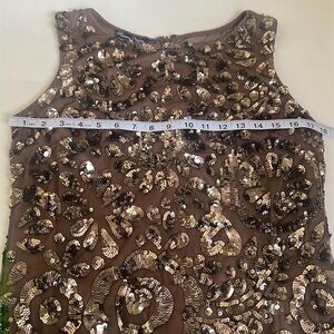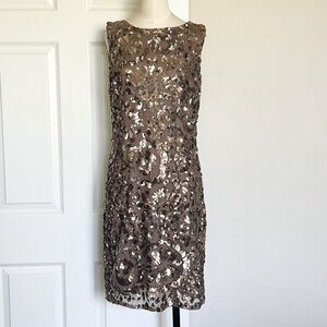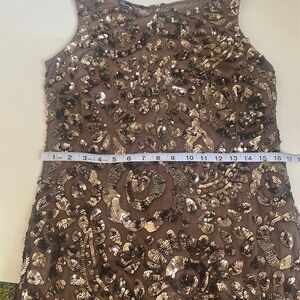 Beautiful dark taupe beaded mini dress from Pisarro nights. Comes with back zipper and lining under. Perfect dress for a special event or occasion.